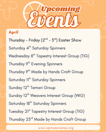 Register your interest at hello@spinweavensw.org and you’ll be added to our SMS distribution list. Each month, you’ll receive the secret location where we’ll gather to spin, connect, and capture the spirit of making in motion.